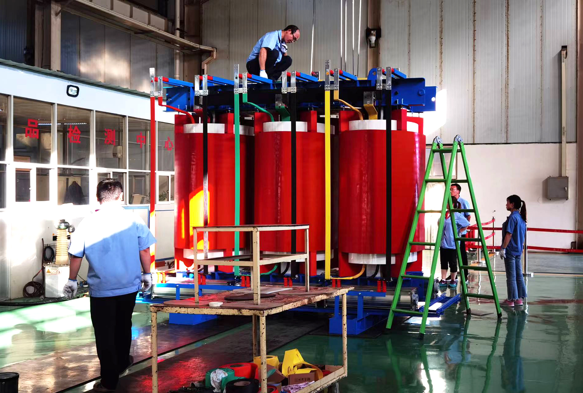 面對(duì)時(shí)間緊、任務(wù)重、難度高,又遇五十年不遇的高溫酷暑天氣,新環(huán)干變?nèi)w員工秉承“始于客戶需求,終于客戶滿意”的經(jīng)營(yíng)服務(wù)理念,踐行陜西電子的“敢于挑戰(zhàn),立信心;攻堅(jiān)克難,求創(chuàng)新”的“敢?超”企業(yè)文化精神,上下一心,迎難而上,設(shè)計(jì)部門(mén)加班加點(diǎn),保障產(chǎn)品整體性能,利用三維工具驗(yàn)證產(chǎn)品結(jié)構(gòu);采購(gòu)部門(mén)克服國(guó)內(nèi)新冠疫情各地散發(fā)可能導(dǎo)致原材料供應(yīng)不及時(shí)情況和材料價(jià)格上漲的因素,保障供應(yīng);生產(chǎn)系統(tǒng)有序組織生產(chǎn),按期交付。最終,產(chǎn)品一次性通過(guò)交接試驗(yàn),順利投運(yùn),圓滿完成了客戶重托,得到了客戶好評(píng)。交付的8500kVA干式特種整流變壓器空載損耗優(yōu)于客戶要求和原變壓器,一年節(jié)約電費(fèi)超過(guò)十萬(wàn)元。